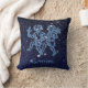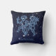 Throw pillow featuring the zodiac symbol for Gemini in soft silver blue, overlaid with the stars of the constellation, against a starry sky background graded from deep midnight blue to black.