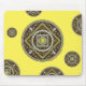 This Gemini themed mandala features a citrine stone surrounded by the symbol for the sign, the constellation, and the alchemical symbol for Air among filigree and weaves.