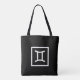 The back presents a clean ♊ symbol and the sign name, representing balance and curiosity.
