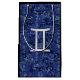 A silver chrome like Gemini zodiac symbol applique on a vibrant navy blue digital camouflage design texture print background. A modern urban racy design for a great custom birthday gift idea.