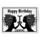 Gemini Happy Birthday Zodiac Astrology Symbol traits blue and black card. Hand drawn twins on front of card. On the inside of card is the Horoscope traits of a Gemini.
