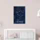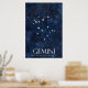 Gemini star sign poster with name, star sign zodiac art piece, with the stars of the Gemini constellation - The poster can be printed up to giant size (24x36inches) without loosing quality. This artwork has beautiful subtle detail within the indigo blue background, and of course the stars themselves.