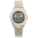 The watch is very nice, the picture is great and the watch looks like quality. The only problem I am having with it is that it is a little too large, and I also can't figure out how to open the clasp. No directions came with it. Very good. The printing is perfect and the watch keeps good time.