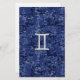 A silver chrome like Gemini zodiac symbol applique on a vibrant navy blue digital camouflage design texture print background. A modern urban racy design for a great custom birthday gift idea.