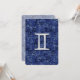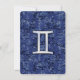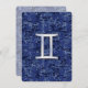 A silver chrome like Gemini zodiac symbol applique on a navy blue digital camouflage design texture print background. A modern urban racy design for a great custom birthday gift idea.