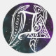 Gemini zodiac symbol with some tribal style line art with a galaxy background