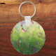 A silvery spider web covered with sparkling dew drops glitters in the warm sunlight of a fresh green spring morning. The tiny pink blossoms of a tree hang behind the web, reflected in the droplets.