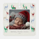 Hand-painted watercolor crystal reindeer in four gemstone varieties - ruby, emerald, diamond & blue topaz - adorn this modern elegant Christmas ornament featuring baby's first Christmas photo. Personalise with your newborn's name and year of birth for a precious, memorable keepsake.