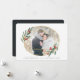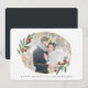 Elegant geometric holiday cards feature your favorite horizontal or landscape oriented photo set inside a gemstone inspired frame in faux gold foil, accented with green watercolor leaves and red berries. Personalize with your names or a short greeting beneath.