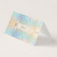 Beautiful opal in aquamarine blue, pink, peach and sea foam green is the background for this wedding table number card.
