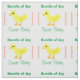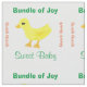 Adorable Yellow Ducky with orange beak and feet ducky themed nursery room pattern on a white background. With the wording in green text, Bundle of Joy, Sweet Baby. Quack Quack is written in orange text. Tile Pattern shown here Basic. Customise It to choose YOUR Tile Pattern placement (None, Basic, Half Brick, Half Drop, Mirror). A cute gender neutral baby material print pattern shown on a white background. Click Customise to increase/decrease font size or style. Use to sew a special nursery chair pillow, etc. See item material description. Original Graphic Artwork by TamiraZDesigns. Visit my store for more original designs www.zazzle.com/tamirazdesigns*