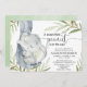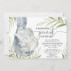 Gender neutral baby shower, elephant greenery gold invitation