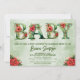 Gender neutral Christmas baby shower invitations with poinsettia and greenery, celebrating the mum to be.