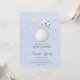 This design features a gender neutral cute whimsical script, a cow jumped over the moon, an elegant calligraphy script, a trendy stylish baby shower invitation, a blue and yellow stars moon, a classic traditional nursery rhythm, a budget friendly postcard template, a baby shower invitation postcard, for mummy to be mother mum, a whimsical barn farm animal