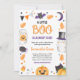 Celebrate the upcoming arrival with a spooktacular twist! Our Gender Neutral Halloween Baby Shower Invitation is perfect for adding a touch of fun and festivity to your celebration. This charming design features an adorable array of Halloween icons, including a friendly ghost, a smiling pumpkin, a cute bat, a whimsical spider, and a playful black cat. The vibrant colours and whimsical illustrations are sure to delight your guests and set the tone for a memorable event. BBS428