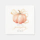 This elegant and charming baby shower paper napkin features a beautiful gender neutral watercolor illustration of a pumpkin with a coquette bow ribbon, perfect for celebrating the upcoming arrival of a little one in the fall season.