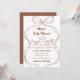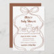Our delicate baby shower invitation card features a hand-drawn baby bottle, cake, clothes, bib and flowers, all in a brown colour palette, within a wavy brown border. it's simple and charming.
