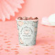 Celebrate the arrival of your little one with sweetness! These Gender Neutral pastel green "Sweet Little Pumpkin" Baby Shower paper cups feature delightful hand-drawn illustrations by Nathalie Portet, showcasing cute little pumpkins, stars, Halloween candies and hand-written phrases, all captured in intricate black ink. This cup is personalised with Mum-to-Be's name and event date on both sides. Perfect for a sweet and magical celebration, personalise your party details directly on the Product Page by simply clicking on "Personalise this template" to make it uniquely yours!