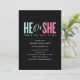 He or she, which one will it be? Cute and modern gender reveal party invitation.
