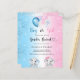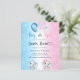 For a gender reveal baby shower. A blue white and pink gradient background. Decorated with glitter and blue, pink and white balloons and glitter dust. A baby boy elephant and a gaby girl elephant. Personalize and add the names of parents to-be and party details. The name and the text: Boy or Girl are written with a hand lettered style script.