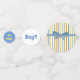 Getting ready to throw a gender reveal party? This confetti will be the perfect addition to your themed events. Spread on table tops or use as decorations on walls, backdrops, and more! You will find that there are three coordinating styles for each gender. Both styles have a large circle with colourful strips and a matching bow, a boy/girl with a question mark on a medium sized circle and finally a smaller circle with the words Oh Baby! in matching colours.