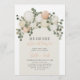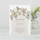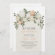 He or She? What will baby be? A cute gender reveal invitation featuring balloon garland with greenery over sage green arch.