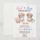Gender reveal invitation featuring two puppies