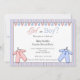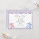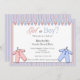 Girl or Boy? Find out at the gender reveal party and wear pink or blue to represent your guess! A fun twist on the traditional baby shower. The gender of the baby will be revealed at this celebration! Cute pink and blue design, with little baby pyjamas and a striped border.