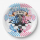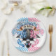 Gender Reveal Pink and Blue Bows and Tires Paper Plate