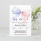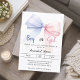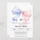 White background, decorated with a large blue and pink bow. For a gender reveal. Personalize and add names and party details.