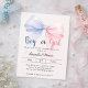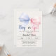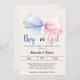 A soft ivory background, decorated with a large blue and pink bow. For a gender reveal. Personalize and add names and party details.