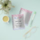 A faux silver looking background. Decorated with pink and light blue glitter, sparkles. Personalise and add a name and party details.