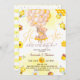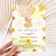 Teddy bear with yellow balloons and cute bumble bees around, gender reveal invite.