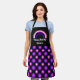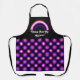 Medium-sized apron with an image of a genderfluidity pride flag and a rainbow, and repeating seamless flower pattern; pink, white, black, and purple design on a black background, a dark variant, with a customisable text template for your own name or message