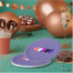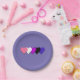 Paper plates with hearts in colours of genderfluidity pride flag, pride design on a purple background; pink, white, magenta, black, and purple hearts