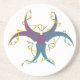 The classic bio hazard symbol with twisting dna strands rapping around the arms in yellow and purple. Gene splicing is dangerous bio hazard and yet zombie friendly.
