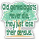 These custom cut vinyl stickers feature a funny genealogy design feature a big tree and the caption "Old genealogists never die they just lose their census".