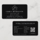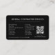 Modern black business card designed for general construction contractors featuring a QR code for quick and easy contact sharing. Created with a bold, professional aesthetic that conveys strength, reliability, and trust while helping clients instantly save your details, view your work, or request quotes. Ideal for contractors, builders, remodelers, and construction companies. Editable text and QR code destination. Clean print-ready layout.