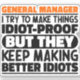 Funny General Manager Sayings "General Manager I Try To Make Things Idiot Proof But They Keep Making Better Idiots". Grab this Funny General Manager design as a funny gifts for an awesome mum, dad or friend.