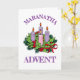Front: An illustration of an Advent wreath made of evergreens and holly with all four candles lit between the arched word Maranatha ("Come, Lord") and the horizontal word Advent--both in large capital letters. Inside: A wish for hope, peace, joy, and love (the themes of Advent's four weeks) and a Biblical passage about preparing the way of the Lord from the Gospel of St. Matthew (Matthew 3:1-3). + Image Credits: Black and white Advent wreath AI-generated by mimicoloringdesigns via Pixabay, modified and colourized by Saints_Aplenty; bow by Elionas also via Pixabay.