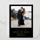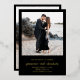 Modern black and gold wedding save the date card featuring a minimal design with your favourite photo. Below are your event details in a combination of simple sans serif fonts and an elegant script printed in real foil. This chic save the date would be great for a goth themed or Halloween wedding.