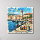 A sunlit view of Genoa unfolds along the Ligurian waterfront, where fishing boats sway beside the quay and the famed lighthouse rises above palm-lined streets and warm Mediterranean facades. Rich painterly brushwork gives this canvas art a timeless Italian travel mood, blending harbor life, coastal architecture, seaside charm, and old-world elegance. Perfect for refined interiors seeking color, warmth, and Riviera nostalgia.