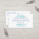 These business cards for spa products are gentle in their design with light grey writing on a white background, decorated with a blue ring of bubbles. Simply change the details to your own by clicking "personalize".