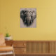 Gentle Elephant Gaze Poster. This visually striking poster captures the full face of an elephant, gazing directly at the viewer with a sense of wise serenity. The elephant's skin is depicted with remarkable detail, emphasising the unique textures and deep wrinkles that are characteristic of its kind. The deep, soulful brown eyes convey a calm intelligence and a majestic presence, inviting contemplation and connection. Set against a soft, neutral-toned background, the composition focuses entirely on the elephant's dignified face, highlighting its strength and wisdom. This poster encapsulates the majestic beauty of one of nature's most venerable creatures, offering tranquillity and awe.
