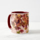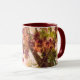 Gentle Fall Mug - It is autumn-- one of my favourite times of the year. Leave change colour-- green to maroon and pink -- then drift to the ground... this photo of a tree caught in the act, was modified by digital filter, transforming it into a work of art.