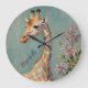 A majestic giraffe stands amidst lavender blossoms set against a calming pastel blue sky. Its long neck and body, adorned with unique patterns, reaches gracefully towards the sky above. Did you know that each giraffe has a unique pattern of spots, much like human fingerprints? This design captures the serene beauty of this gentle giant, blending its impressive stature with the delicate details of its surroundings.