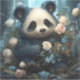 Gentle Panda Bear Among Jungle Roses