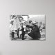 Gentleman and Kids Playing with Bear Cub On Leas Canvas Print