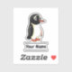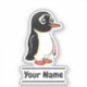 Vinyl sticker with an illustration of a gentoo penguin; a design with customisable text template for your name.