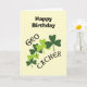 Geo Cacher text and a splash of shamrocks is a unique geocaching design on birthdays .